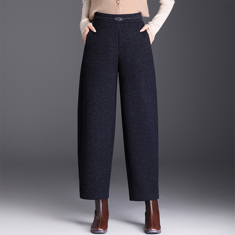 毛呢小脚裤女秋冬宽松哈伦裤高腰直筒九分裤加厚休闲裤子女半松紧