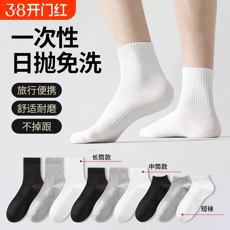 一次性袜子男女通用日抛旅行纯棉即弃袜男款中短筒旅游防臭丢丢袜