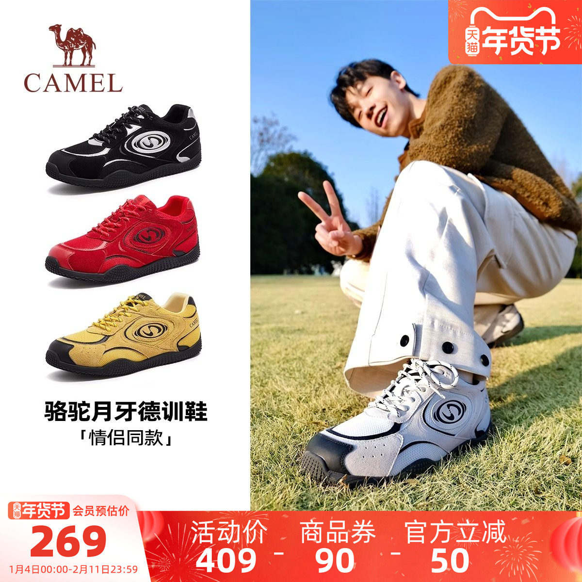 骆驼男鞋月牙德训鞋2025秋季新款情侣小白鞋复古厚底运动板鞋女