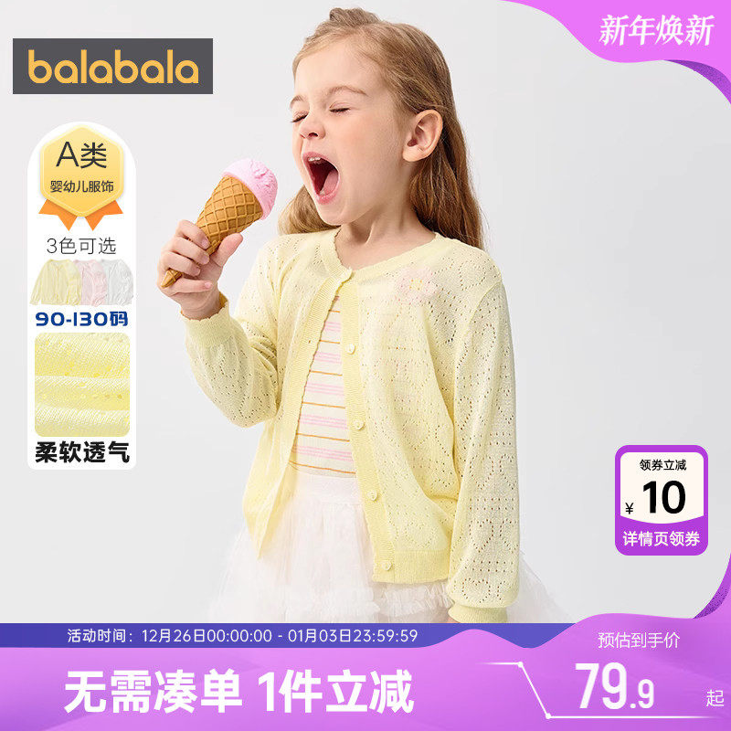 巴拉巴拉女童针织衫外套宝宝白色毛衣开衫夏装新款童装儿童防晒薄