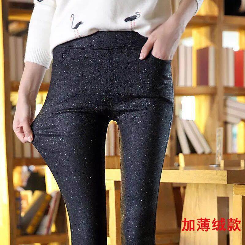 秋冬加厚磨毛休闲裤修身显瘦小脚铅笔裤女九分外穿打底裤涂层皮裤