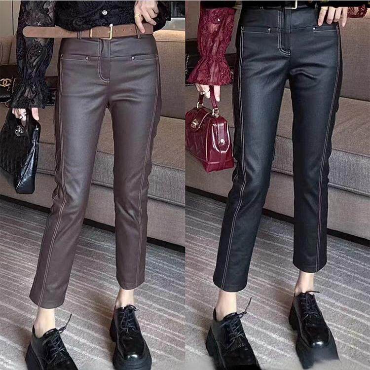 欧货高端涂层铅笔裤女秋高腰弹力显瘦气质外穿打底皮尤小脚直筒裤