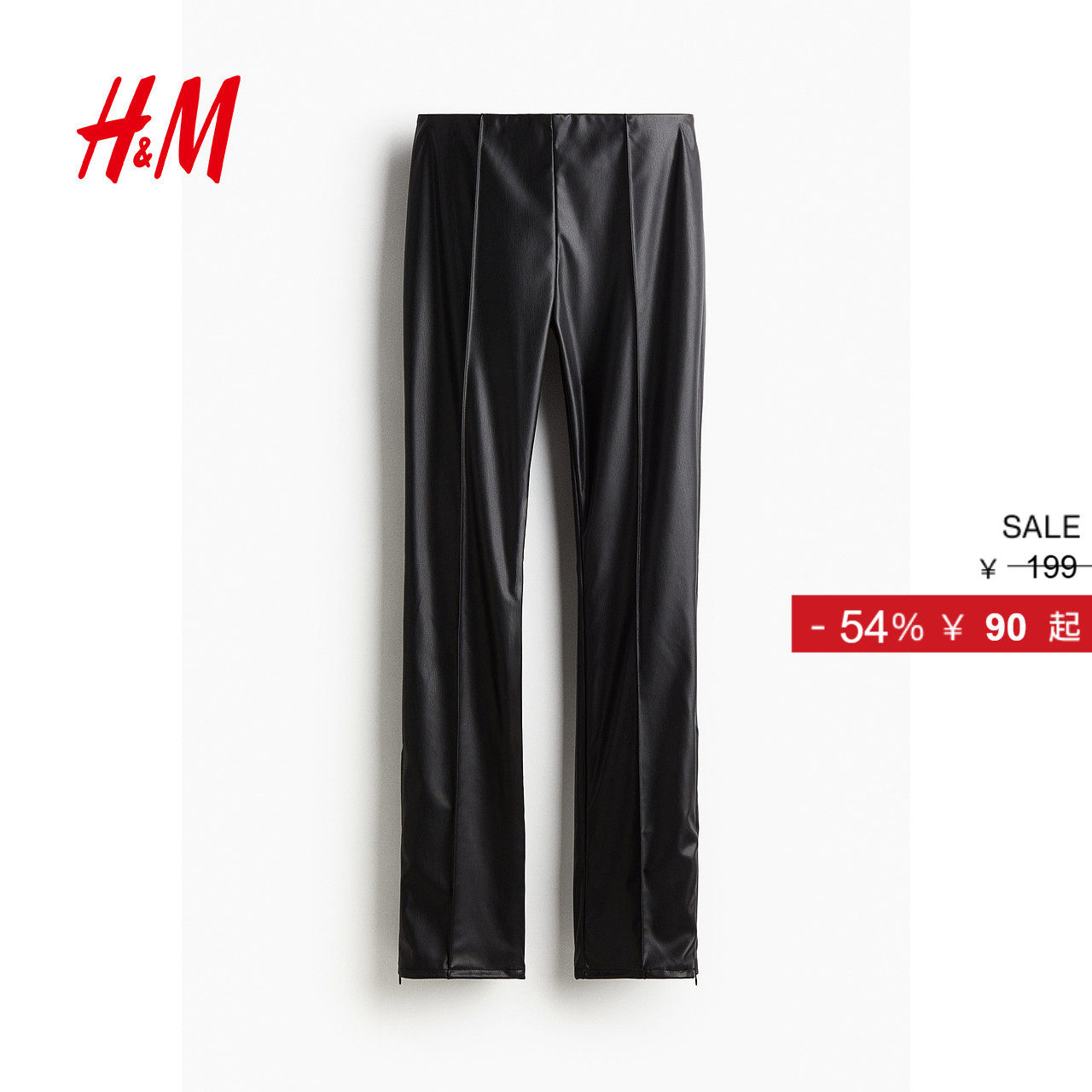 修身显瘦涂层PU皮皮裤女2022秋季新款高腰小脚裤打底裤黑色长裤
