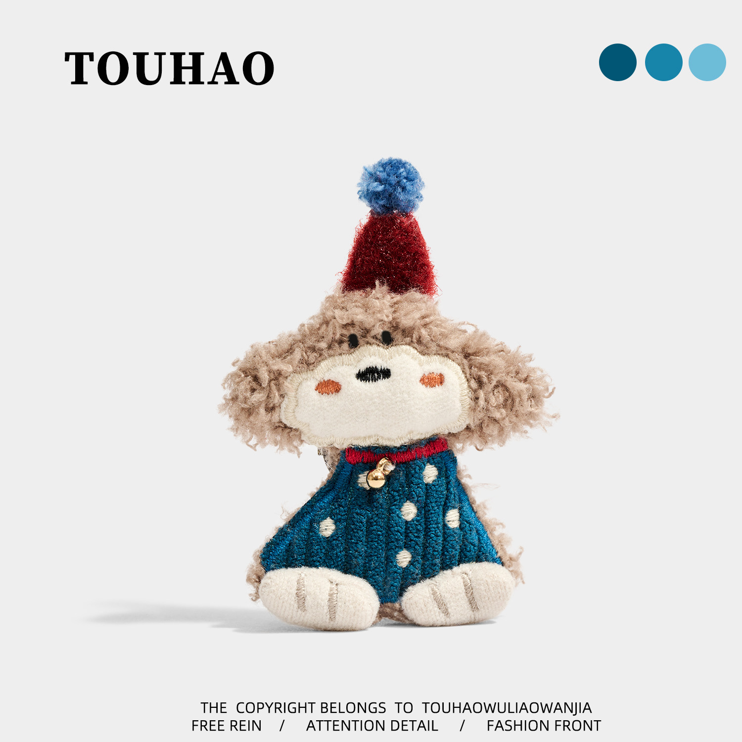 TOUHAO原创礼帽小狗可爱布艺玩偶胸针大衣毛衣别针固定扣百搭胸花