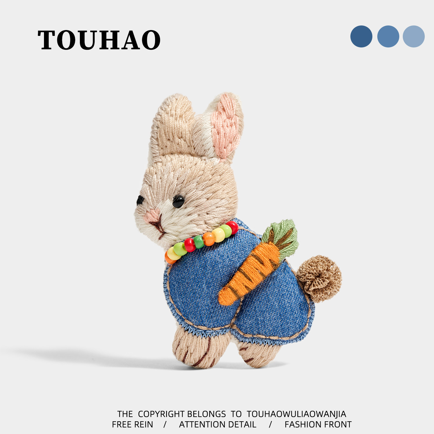 TOUHAO原创牛仔小兔子可爱布艺胸针配大衣毛衣别针固定扣百搭胸花