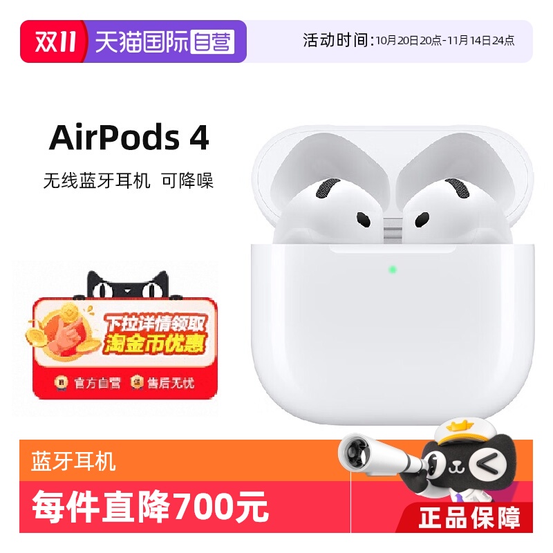 【自营】Apple/苹果 AirPods 4 蓝牙耳机 非降噪款 全国联保