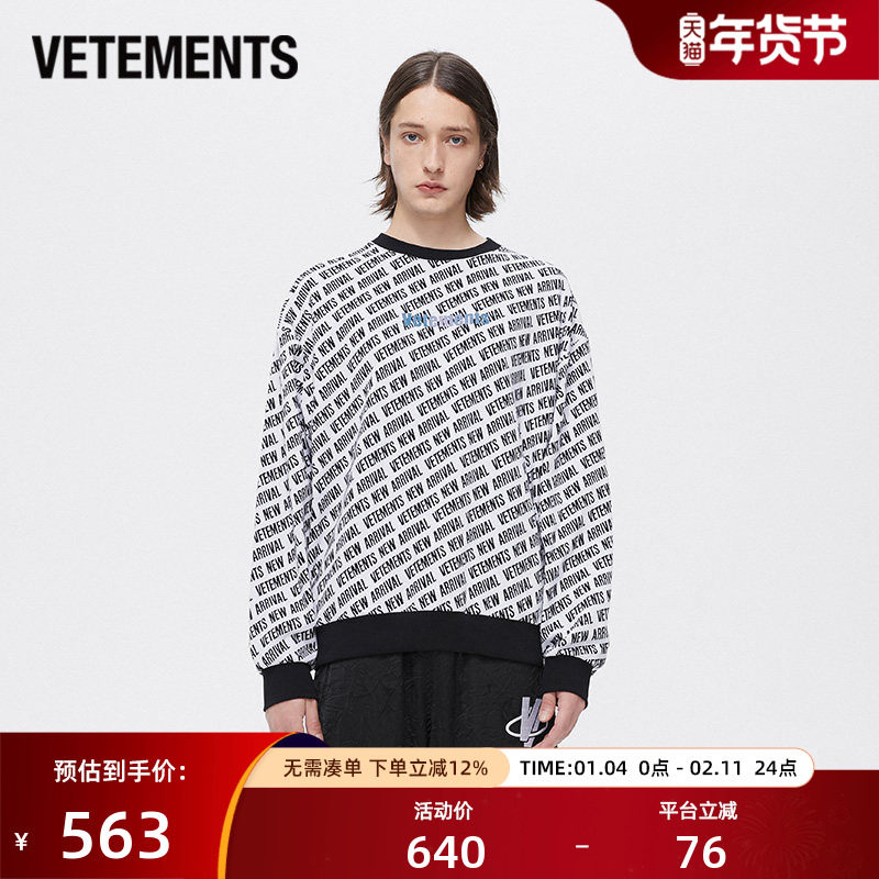 VETEMENTS秋冬新品卫衣男女oversize宽松圆领套头卫衣34550010