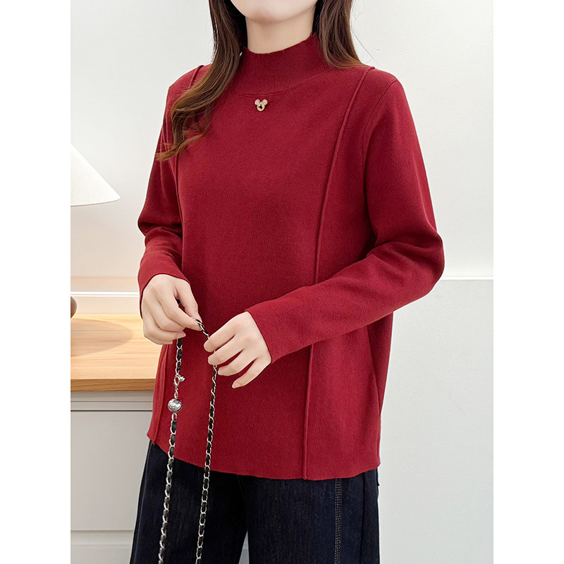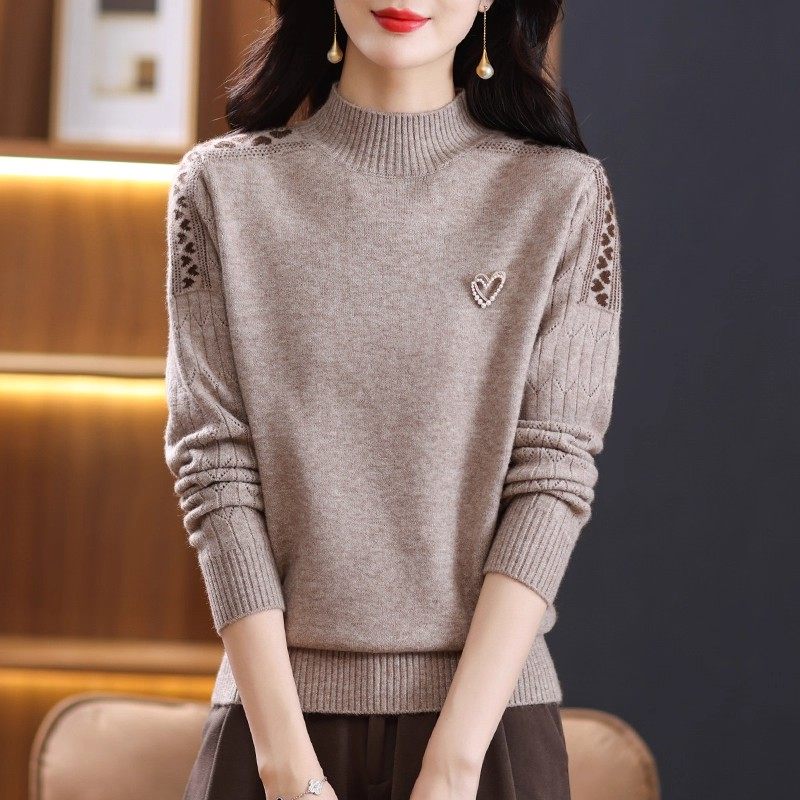2025年新款女士毛衣秋冬半高领短款宽松洋气中年羊毛衫保暖打底衫