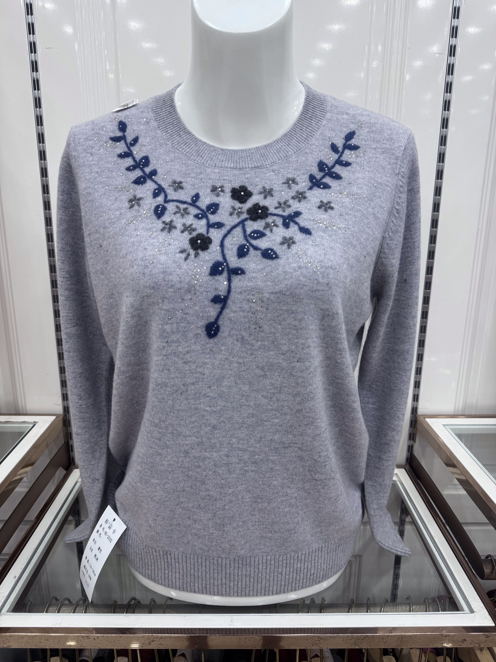 高端羊绒衫女士毛衣秋冬新款时尚刺绣宽松显瘦软糯羊毛针织打底衫