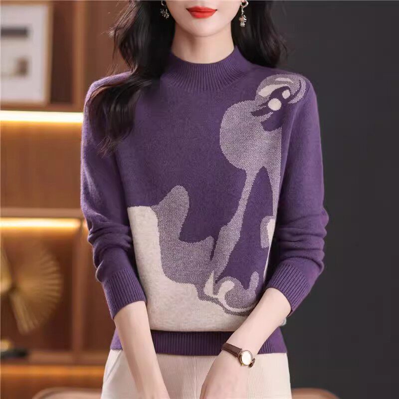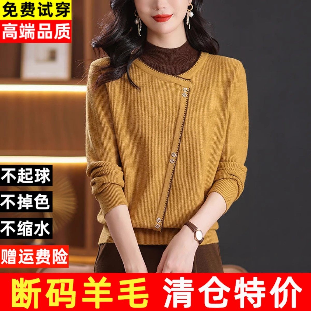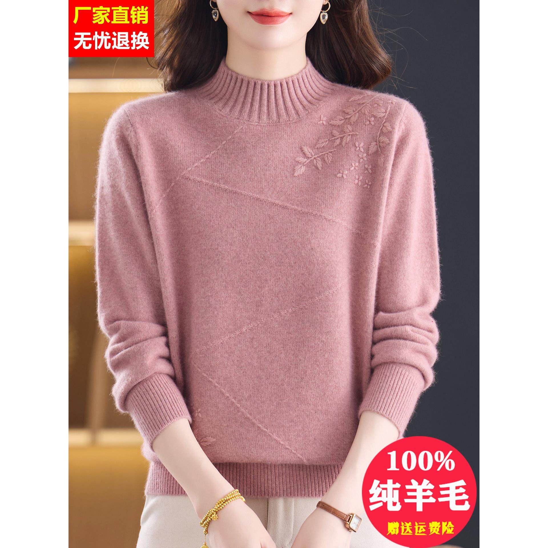 半高领纯羊毛衫女士毛衣秋冬季加厚保暖新款妈妈装针织羊绒打底衫