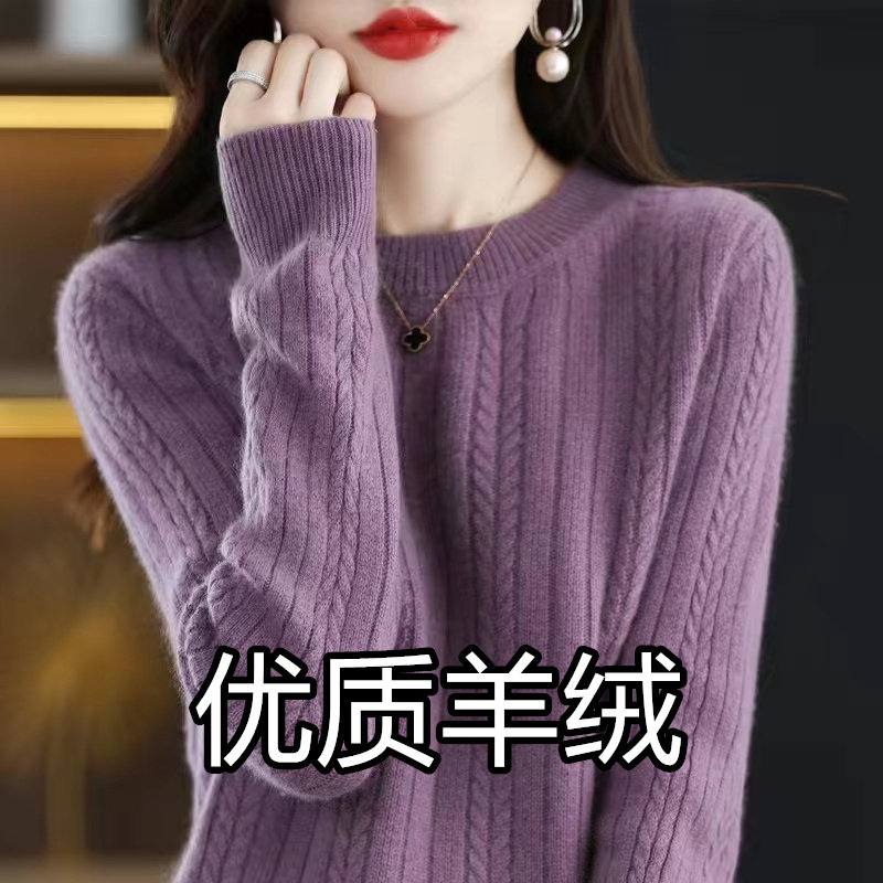 100%纯羊毛衫女士毛衣秋冬新款针织绒打底衫妈妈圆领气质高级感