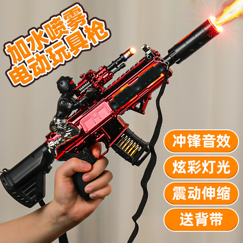 儿童枪玩具3--4男孩喷雾电动冲锋枪炫酷灯光音效伸缩震动玩具枪