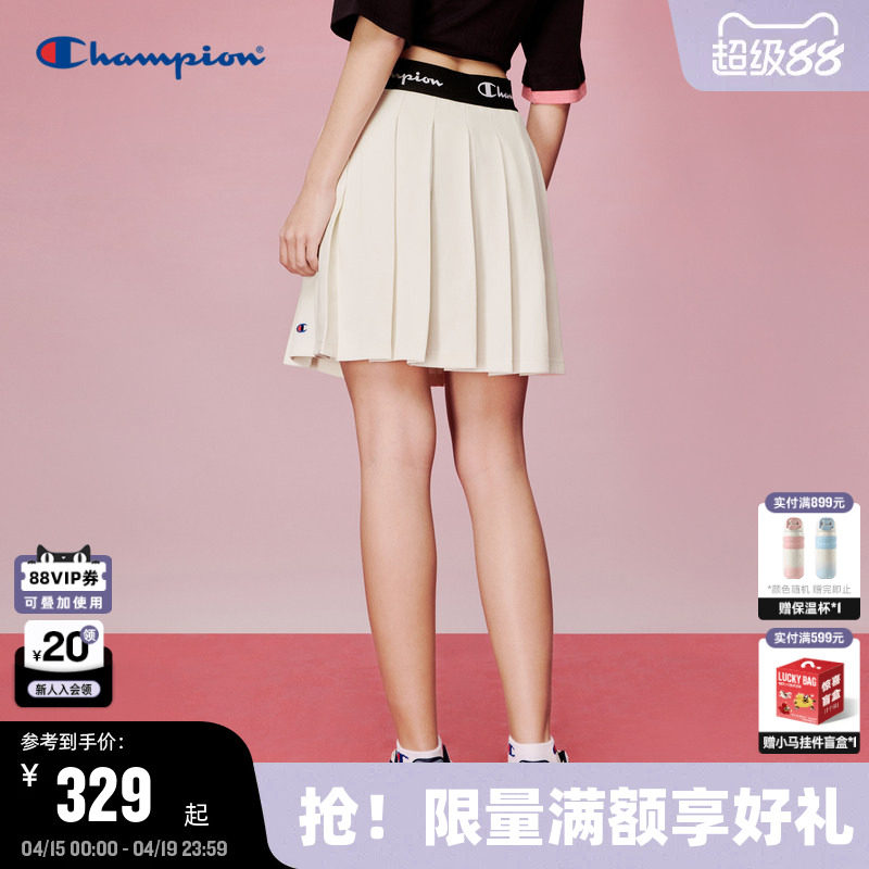 Champion冠军百褶裙女25夏季A字裙秋季休闲短裙校园风简约百搭