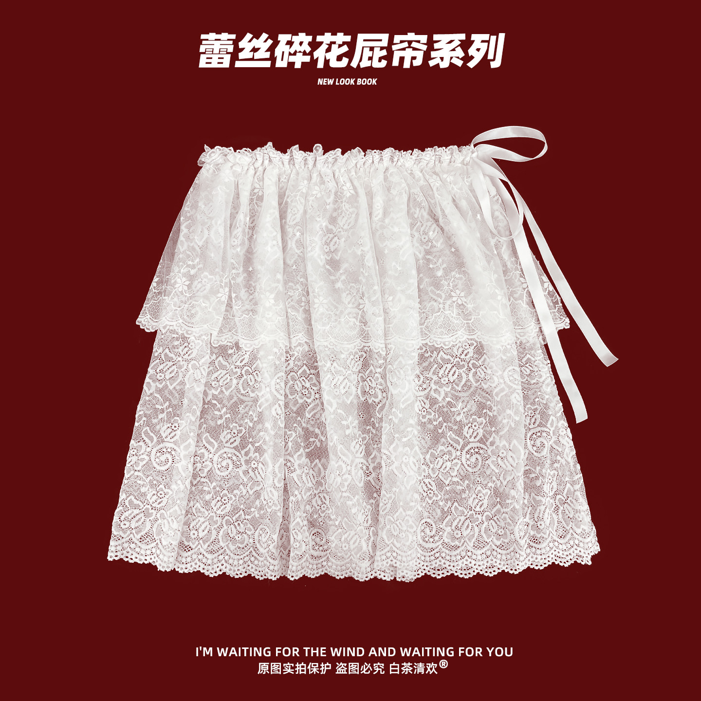 芭蕾风网纱白色蕾丝屁帘女生叠穿高级感时尚腰饰蛋糕裙半身裙短裙