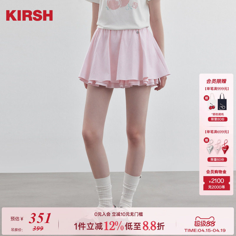 樱桃KIRSH 韩系粉色条纹半裙百褶裙女2026春夏甜美少女半身裙短裙