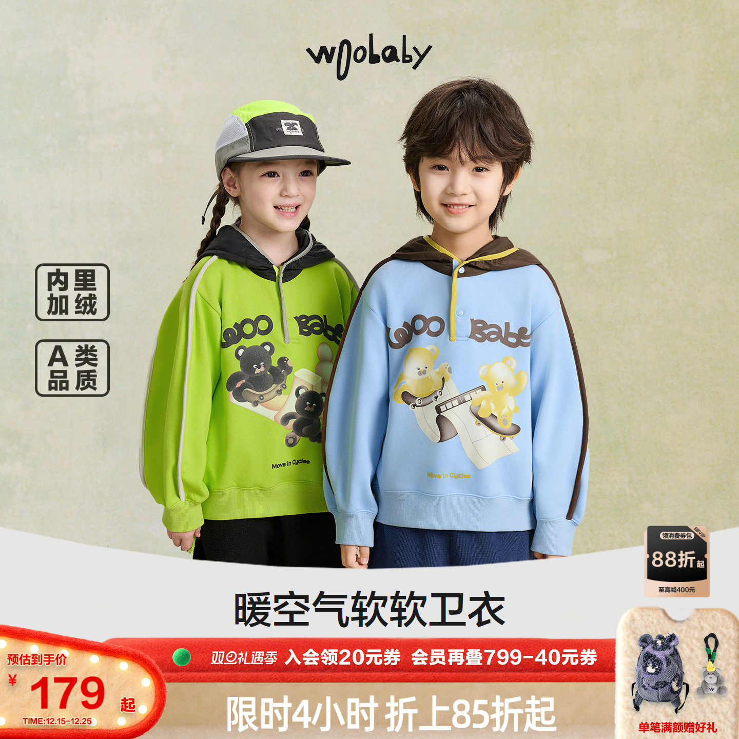 [毛怪]woobaby儿童加绒卫衣保暖男童女童25秋季新品轻盈连帽上衣