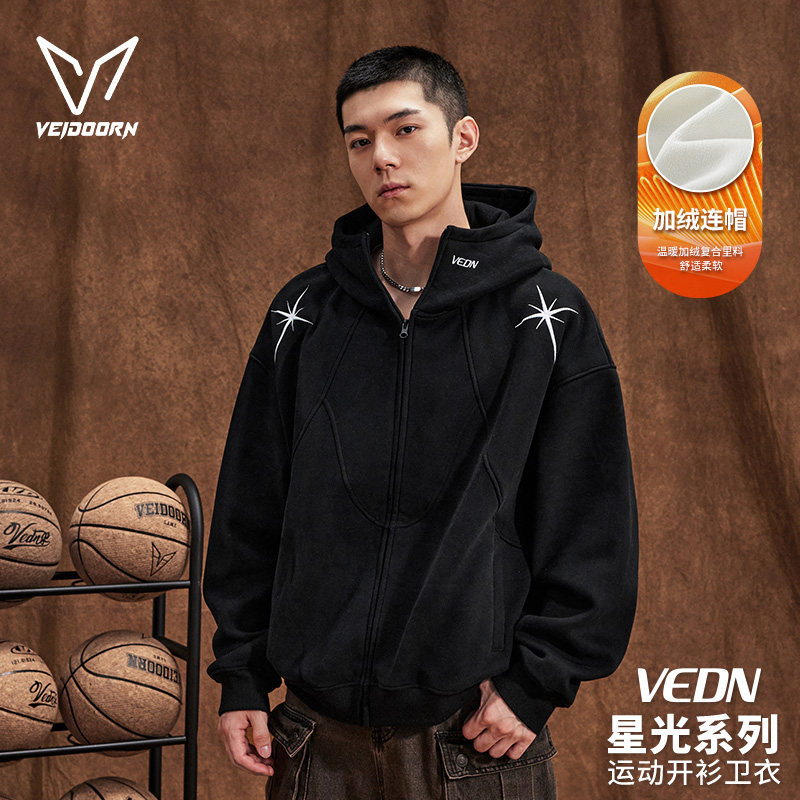 维动星光卫衣男秋季新品美式宽松休闲大码女情侣外套连帽开衫上衣