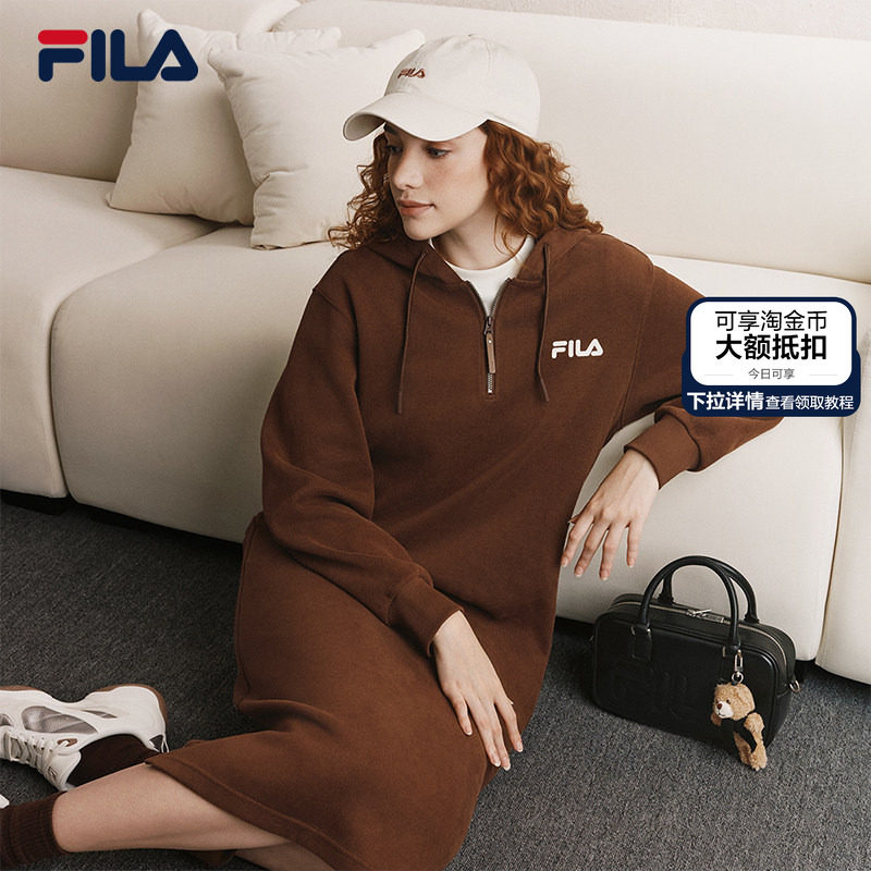 FILA 斐乐官方连衣裙2025年秋季新品长款连帽打底显瘦卫衣长裙子