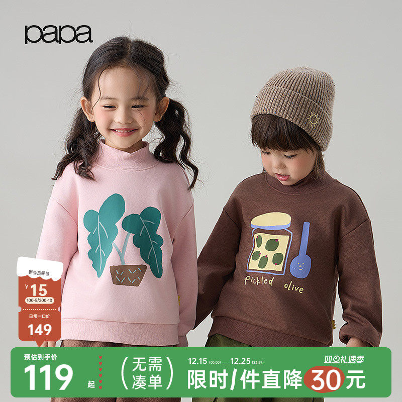 【新品】papa爬爬秋季儿童卫衣男女童洋气条纹海军领宽松童装上衣