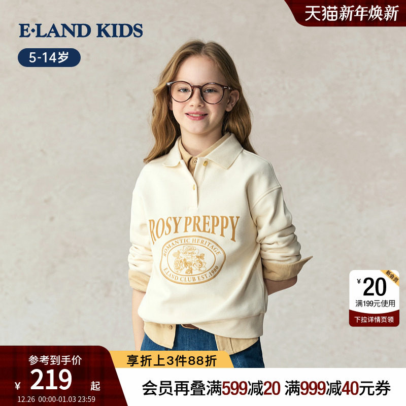 eland kids衣恋童装女童卫衣2025年秋季新品甜美学院风长袖上衣