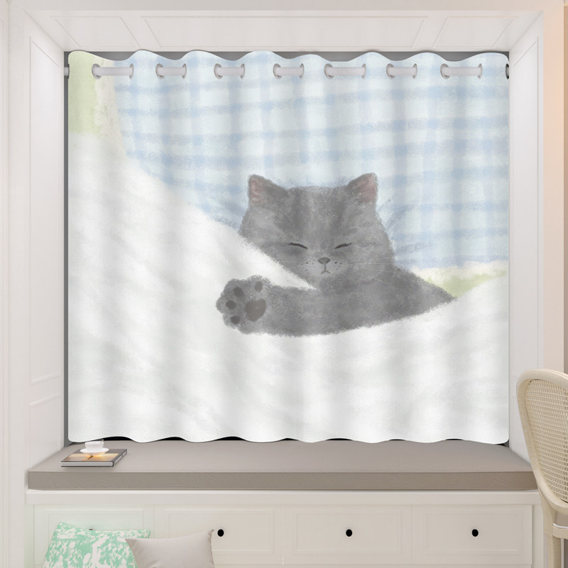 一二布布儿童房窗帘遮光免打孔安装男女孩卧室小窗户阳台飘窗遮阳