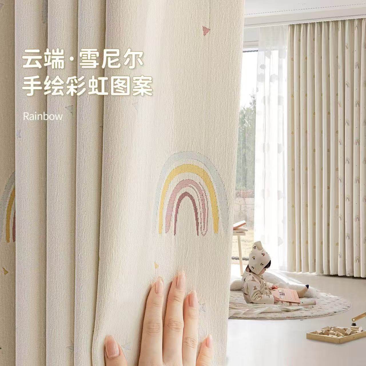奶油风儿童房窗帘女孩卧室房间雪尼尔遮光飘窗男孩彩虹豆2025新款