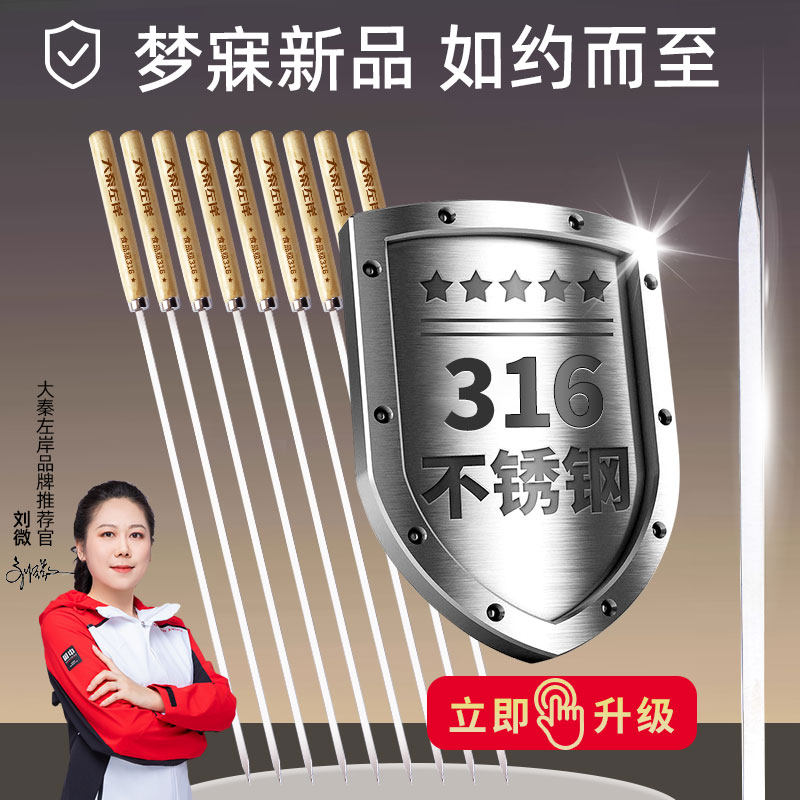 烧烤签子不锈钢木柄扁签串羊肉烤肉食品级户外烤串工具家用烧烤针