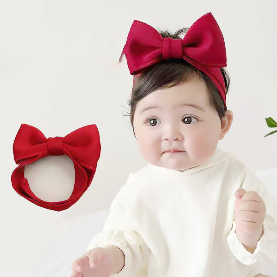 韩版婴儿发带女宝宝可爱蝴蝶结发饰婴幼儿满月公主不勒头红色头饰