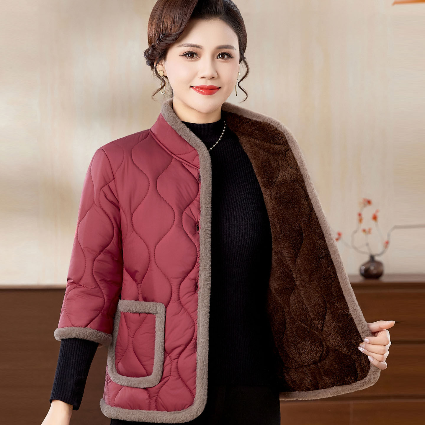 妈妈秋冬中式国风七分棉服加绒加厚棉衣马甲保暖中老年人盘扣棉袄