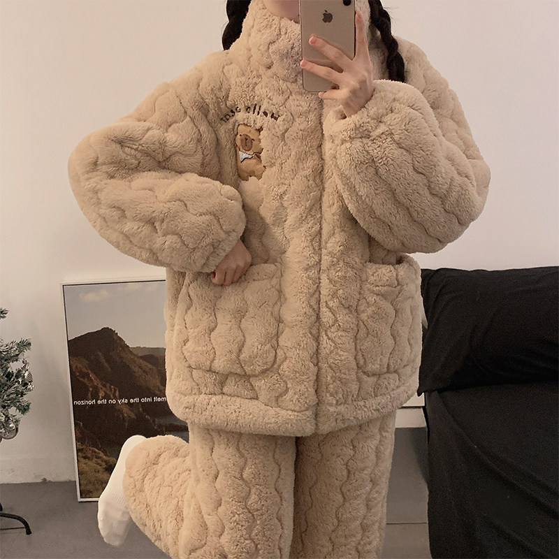 - 冬季睡衣女珊瑚绒加厚保暖