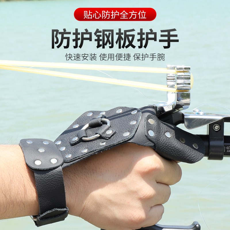 弹弓射鱼打鱼护手鱼镖护手渔轮腕带护手牛皮钢板飞雪护手铠甲护手