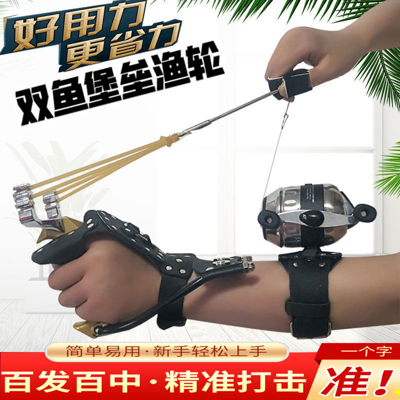 PM40射鱼轮腕带双鱼堡垒打鱼弹弓神器正品全金属全套装渔轮鱼镖