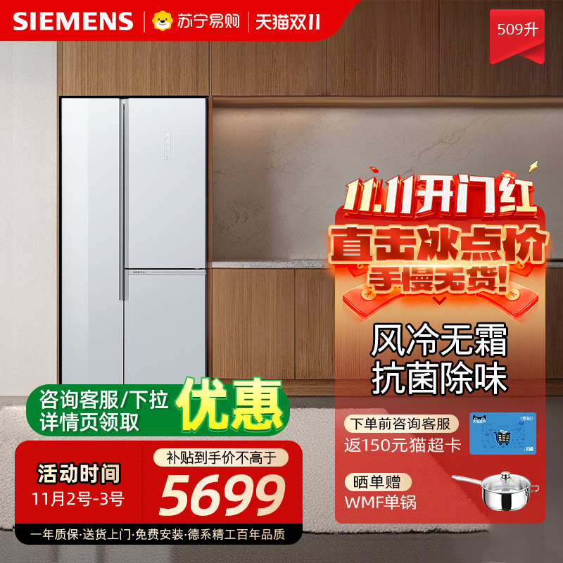 西门子(SIEMENS)550L十字对开门冰箱超薄嵌无霜净味KC565683EC