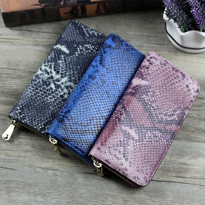 头层牛皮长款钱包女外贸2022新款蛇纹真皮拉链大容量多卡位手拿包