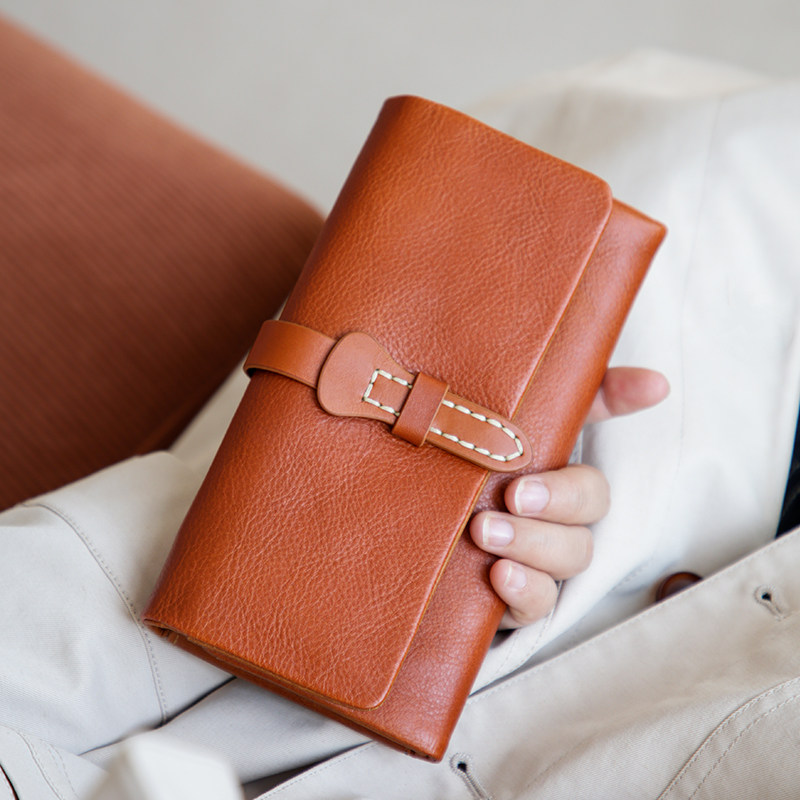 漫色植鞣头层牛皮长款钱包女士复古手工真皮大容量多卡位三折钱夹