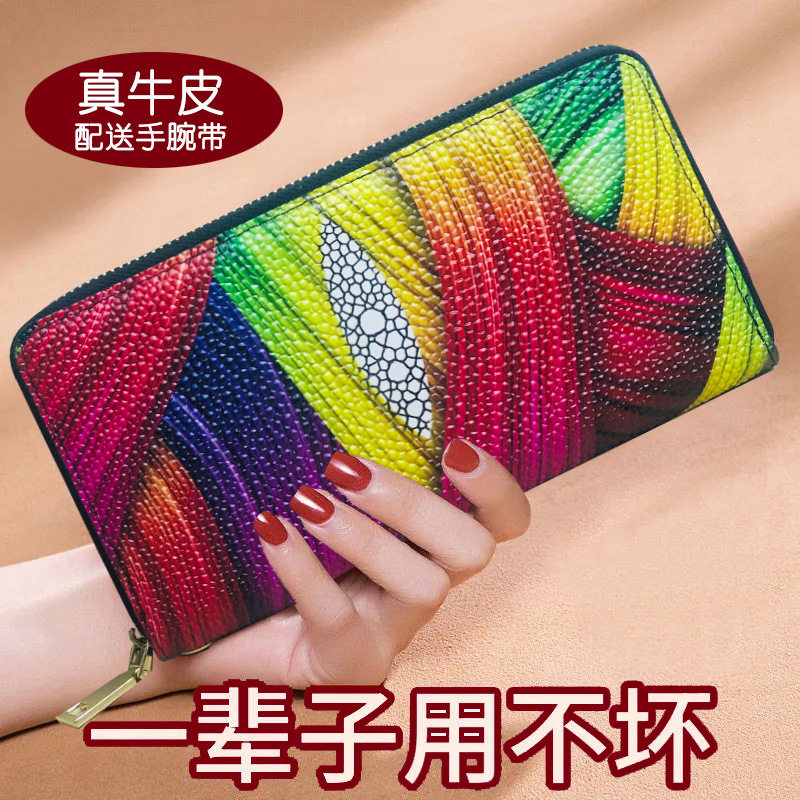 新款女多功能简约长款学生真皮钱包女士手拿包牛皮多卡位超薄皮夹