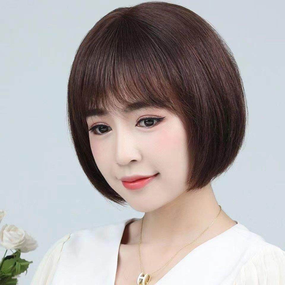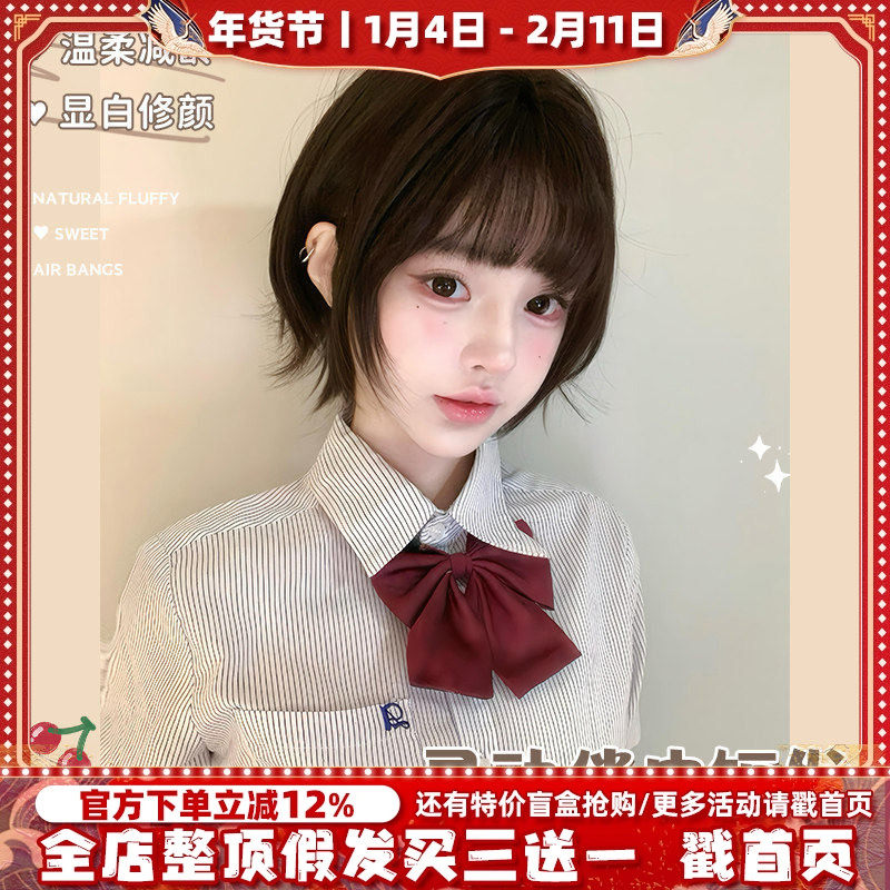 假发空气刘海大头皮bobo头短发修脸自然显年轻圆脸波波头全头套帽