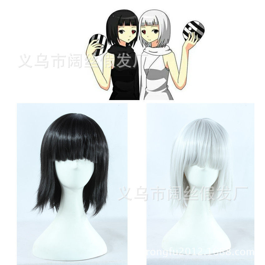 东京食尸鬼食种 黑奈 奈白cosplay假发假毛 黑色银白色bobo头短发