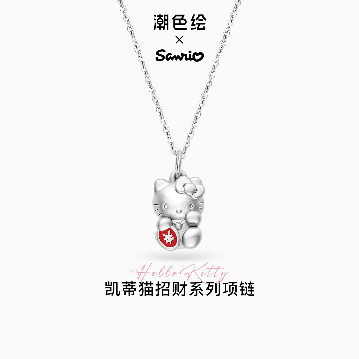 清仓潮色绘三丽鸥Hellokitty凯蒂猫招财项链纯银女生闺蜜生日礼物