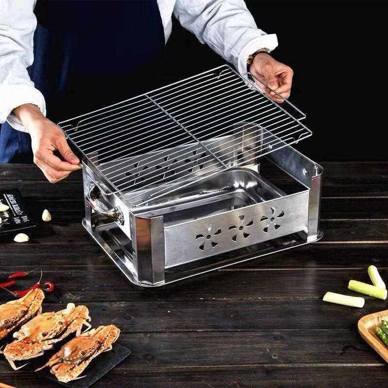 烧烤网 不锈钢长方形加密烤炉烧烤架铁丝网格烤肉工具网大号家用
