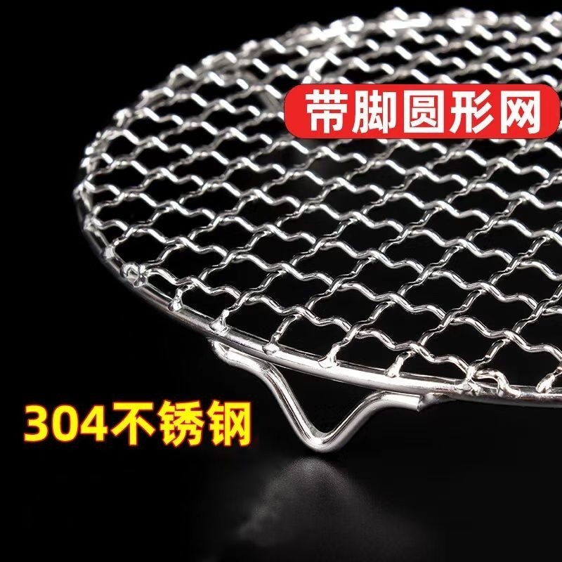 304不锈钢烧烤网圆形电陶炉烤网围炉煮茶带脚加粗烤肉方格网烤架