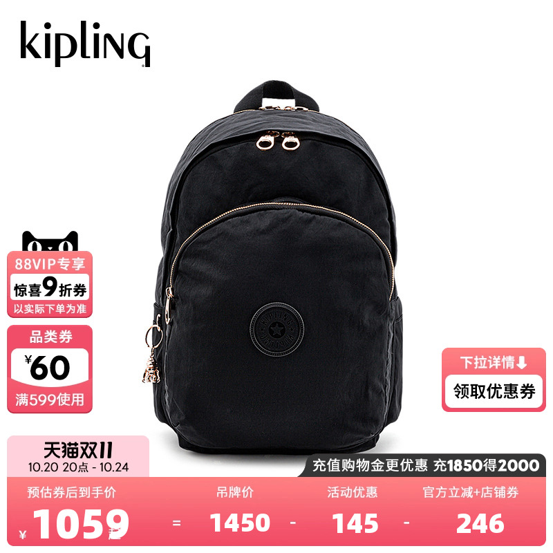 【晁然双十一】kipling女款轻便休闲双肩背包|ALDINE&LOVEBUG U