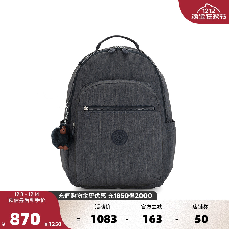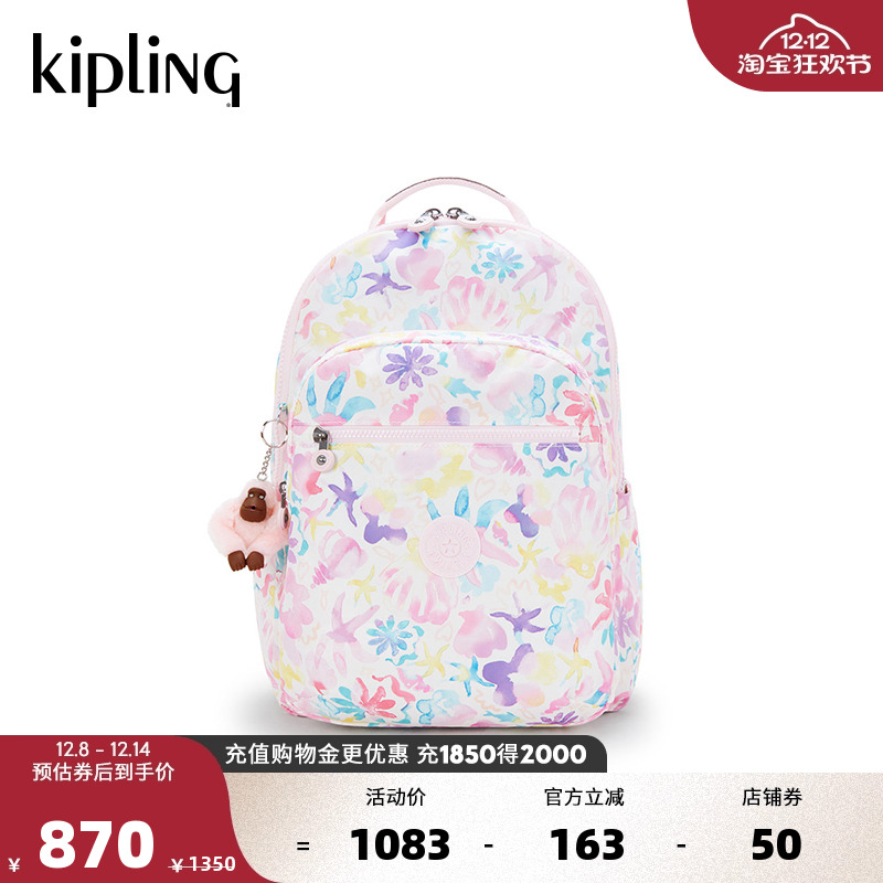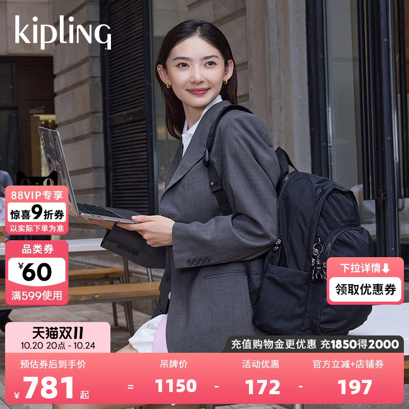 Kipling2025秋冬新款轻便学生书包大容量通勤双肩包首尔包|SEOUL