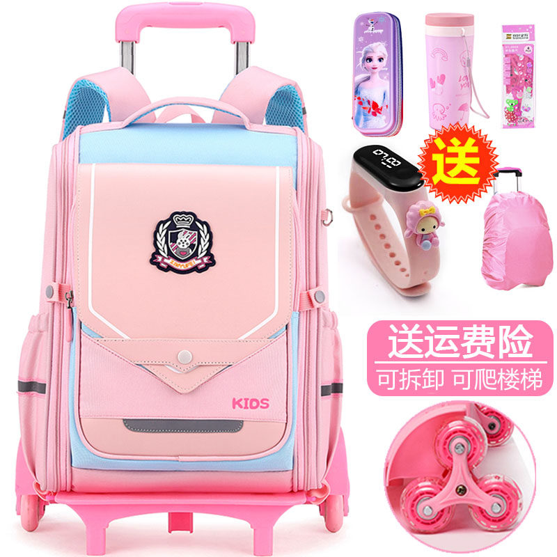小学生拉杆书包女二三到六年级2021年新款防水爬楼儿童拉杆箱女童