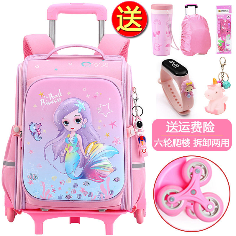 美人鱼拉杆书包女孩小学生三到六年级儿童拉杆箱女童轻便防水爬楼