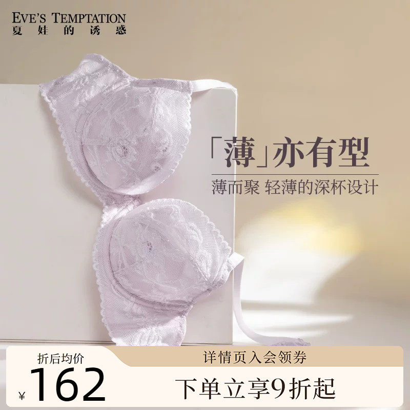 夏娃的诱惑法式蕾丝内衣女秋冬超薄款性感聚拢新款大胸显小文胸罩
