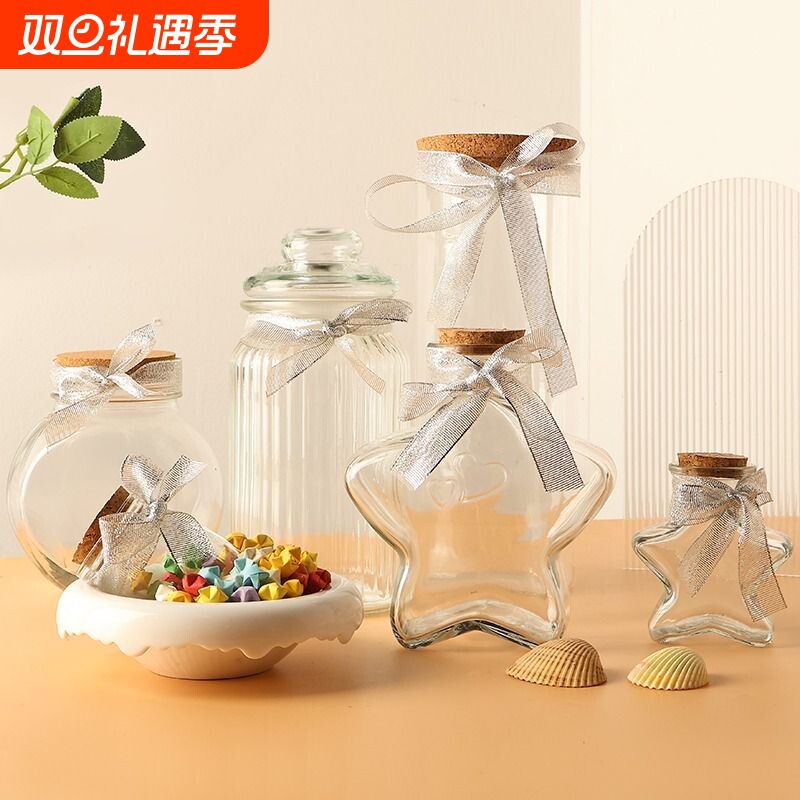 玻璃许愿瓶子储物瓶彩虹瓶空瓶幸运星折纸星星夜光星空五角星收藏
