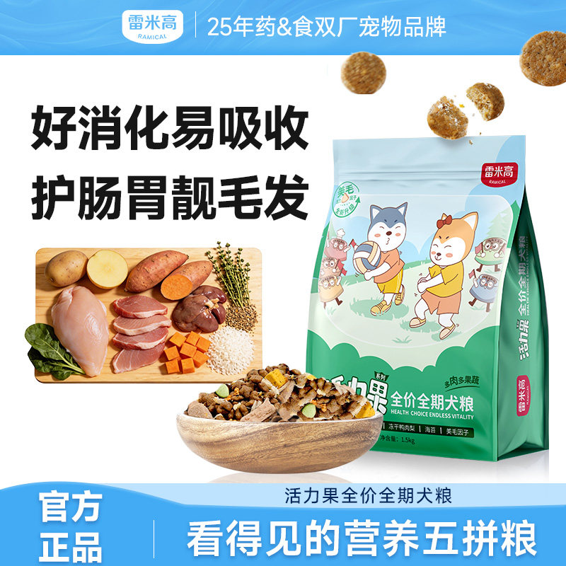 雷米高活力果狗粮果蔬冻干五拼柯基法斗柴犬通用型成幼犬粮1.5kg