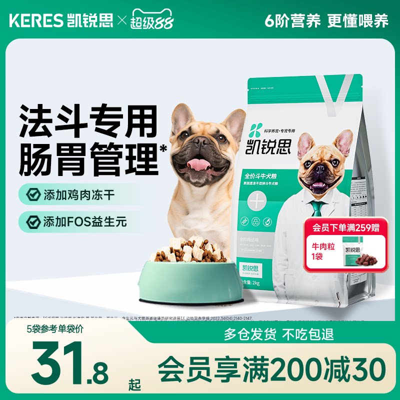 凯锐思法斗冻干双拼狗粮幼犬成犬通用型法国斗牛犬专用犬粮20斤