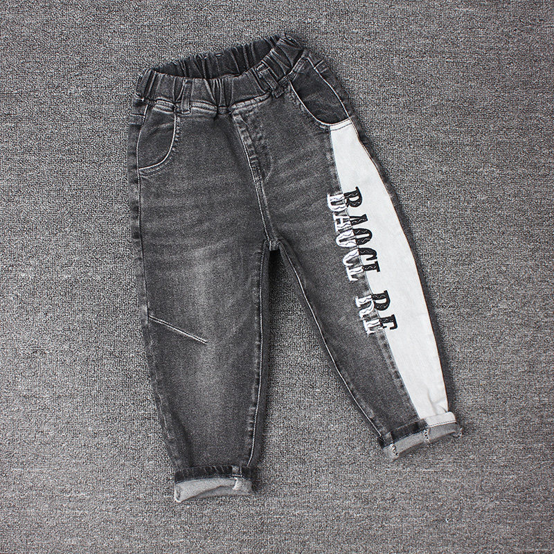儿童牛仔裤潮男童拼接烟灰色中大童牛仔裤子宝宝小脚裤3-12岁春秋